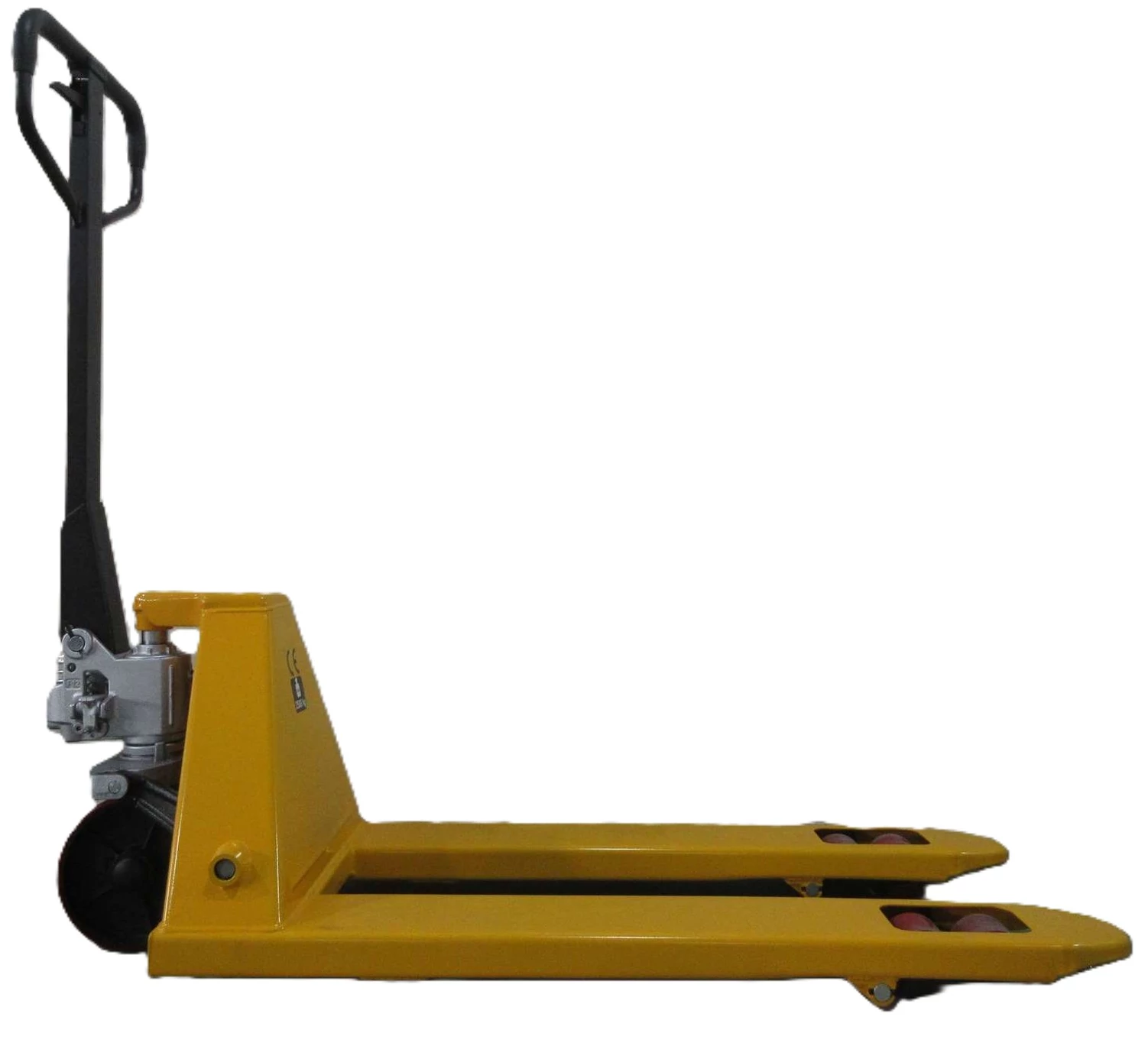 A BESTFROG 2,5 tonnás poliuretán dupla görgős kézi raklapemelő kiválóan alkalmas raklapos áruk kézi mozgatására beltéren és kültéren egyaránt. Kompakt mérete és vonzó designja professzionális és ideális segítséget nyújt raktárakban, áruházakban és gyárakban. A süllyesztési sebesség tetszés szerint szabályozható, a három állású vezérlőkarral minden funkció pontosan kezelhető. A súlyleengedés kézzel és lábbal is megoldható. A könnyed irányíthatóságot a zsírzott forgó alkatrészek és az ergonómikus poliuretán fogyanytú biztosítja, melynek az ártmérője jól illeszkedik a tenyrünkhöz. A krómozott csapágy perselyek és tengelyek könnyed futást hosszú szervíz intervallumot biztosítanak. A 3 pontos zsírzási lehetőség könnyed karbantartást tesz lehetővé. A megerősített vázszerkezet nagy terhek alatt sem deformálódik és a porfestésnek köszönhetően a bevonat hosszú ideig védi a korrózió ellen. A magas szilárdságú acélöntvényből készült hidraulika ház nem csak megbízható, hanem lecsavarozható szimeringházának köszönhetően minden tömítés és szelep könnyedén cserélhető. Az erősebb kivitelű krómozott dugattyúszár könnyedén emeli a terhet. A 200 mm átmérőjű poliuretán bevonatú kerekének köszönhetően kevésbé rázkódik a teher és könnyebb mozgatni. A poliuretán anyagból készült kerekek és görgők nagy szilárdságuknak köszönhetően rendkívül kopásállóak és ezért rendkívül hosszú élettartammal rendelkeznek. A villaél bevezető görgők könnyű felvételt biztosítanak a rakat felvételéhez minden irányból. Műgyanta padlón nem hagynak nyomot. Minden Bestfrog raklapemelő CE tanusítvánnyal rendelkezik, melyhez cégünk megfelelősségi nyilatkozatot és kezelési-használati utasítást biztosít. Raklepemlőinket összeszerelve és súlypróbával letesztelve adjuk át. Garanciális javítás esetében a javítást cégünk telephelyére beszállítva lehet igénybe venni.