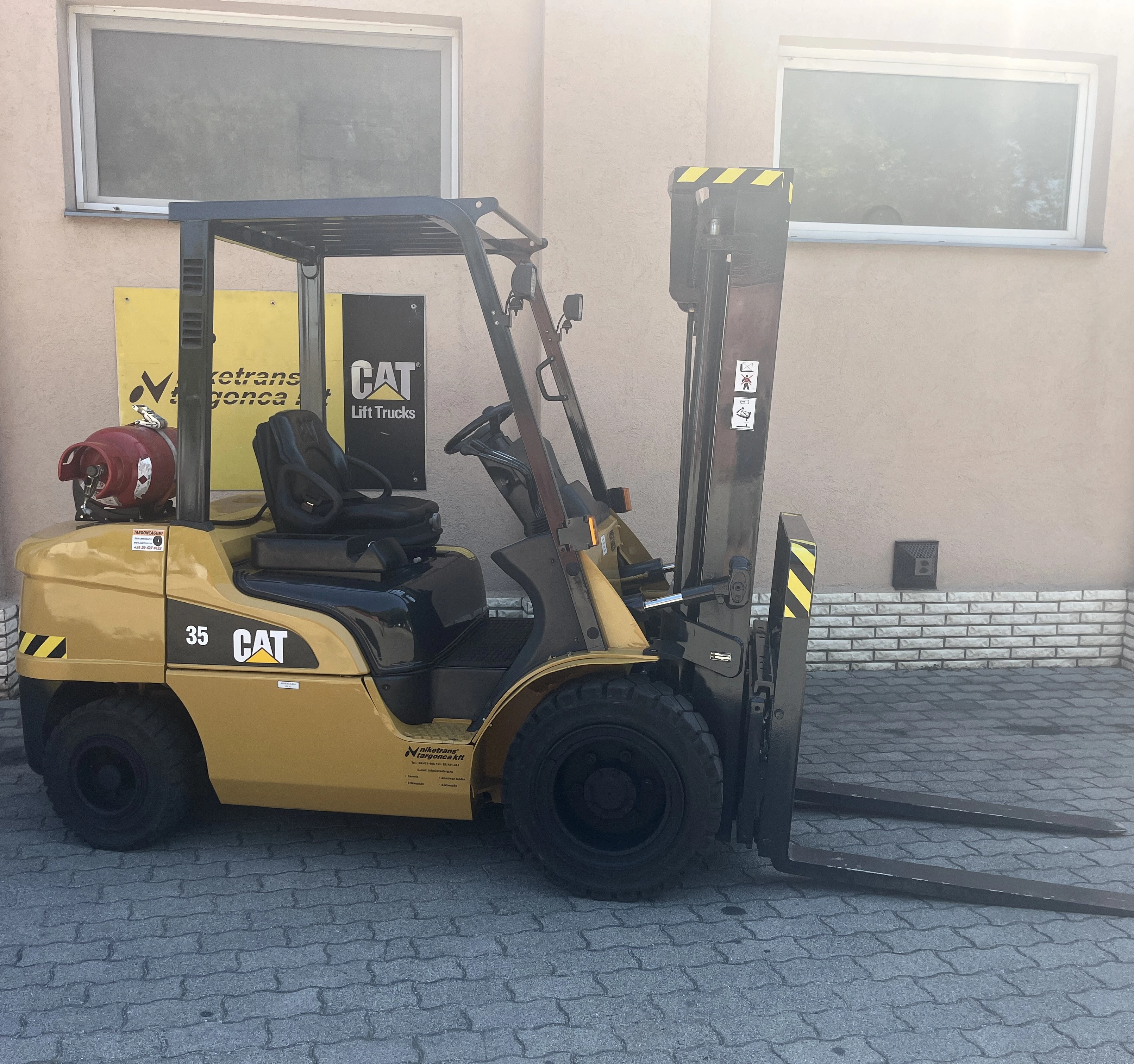 Eladásra kínálunk egy felújított, kiváló műszaki állapotú, 3.5 t teherbírású homlokvillás targoncát, a Caterpillar Inc. GP35NT típusából, 2016-os gyártási évvel. A berendezés gázüzemű (LPG), ipari felhasználásra tervezett megbízható konstrukció, amely felújítást követően még újszerűbb állapotba került, így azonnal munkába állítható.