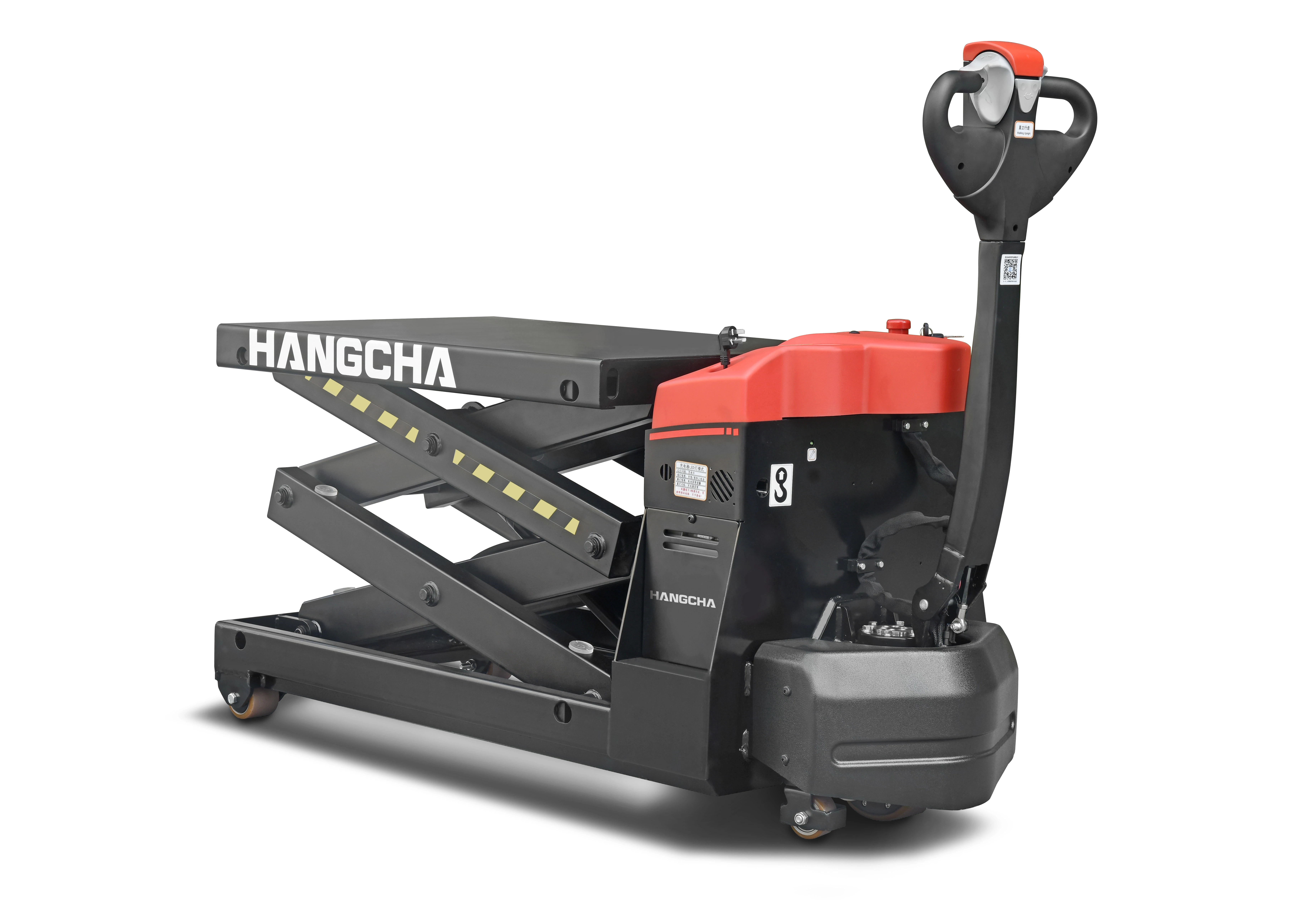 A Hangcha emelőasztal nagy teljesítményű állandó mágneses motorral, egyrészes hidraulikus tápegységgel és karbantartást nem igénylő, nagy kapacitású akkumulátorral van felszerelve, így megbízható és energiatakarékos működést kínál. A biztonságról az oldaltámasztó rendszer, az emelőhengeren elhelyezett egyirányú fojtószelep, a vízálló csatlakozók, valamint a három vészfékező funkció gondoskodik. A joystick-on elhelyezett vészhelyzeti hátramenet gomb és az elektronikus emeléskorlátozás tovább növeli a kezelő és a rakomány védelmét.