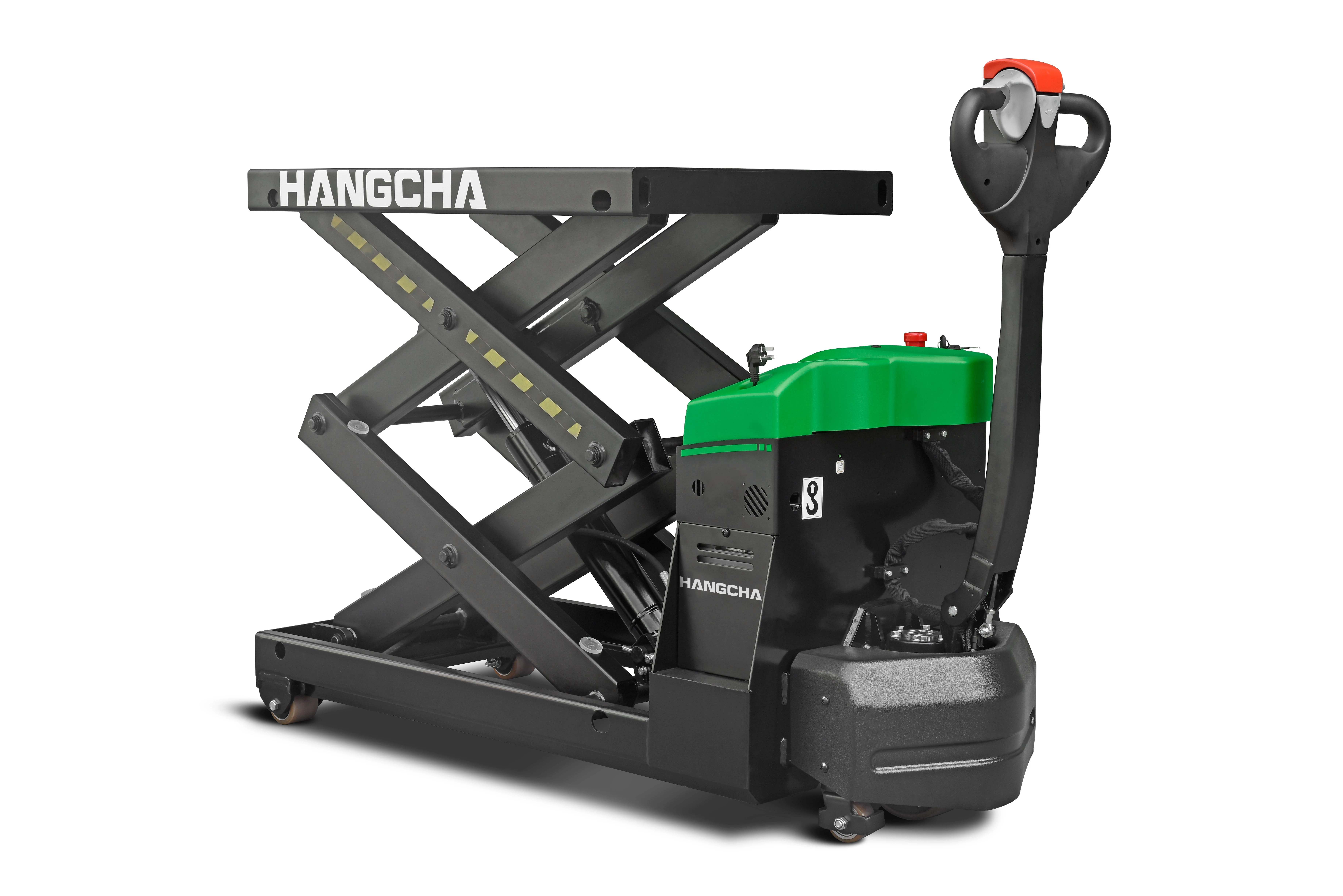 A Hangcha emelőasztal nagy teljesítményű állandó mágneses motorral, egyrészes hidraulikus tápegységgel és karbantartást nem igénylő, nagy kapacitású akkumulátorral van felszerelve, így megbízható és energiatakarékos működést kínál. A biztonságról az oldaltámasztó rendszer, az emelőhengeren elhelyezett egyirányú fojtószelep, a vízálló csatlakozók, valamint a három vészfékező funkció gondoskodik. A joystick-on elhelyezett vészhelyzeti hátramenet gomb és az elektronikus emeléskorlátozás tovább növeli a kezelő és a rakomány védelmét.