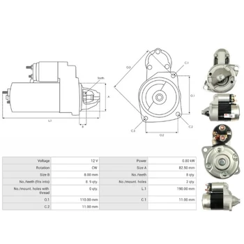 Megbízható indítás minden körülmények között. A 12 V-os, 0.8 kW teljesítményű önindító robusztus kialakításának és precíz fogaskerék-geometriájának köszönhetően gyors és egyenletes indítást biztosít. A jobbra forgó kivitel, a 8 fogas hajtófogaskerék és az optimalizált karima-kialakítás pontos illeszkedést és hosszú élettartamot garantál. Ideális választás a mindennapi használatra, ahol a megbízhatóság és az azonnali indíthatóság alapkövetelmény. |