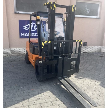 Eladásra kínálunk egy használt 3.5 t teherbírású, 2005-ös évjáratú felújított HANGCHA CPCD35 dízel üzemű homlokvillás targoncát, melyre 6 hónap vagy 250 üzemóra garanciát vállalunk. Felszereltség: