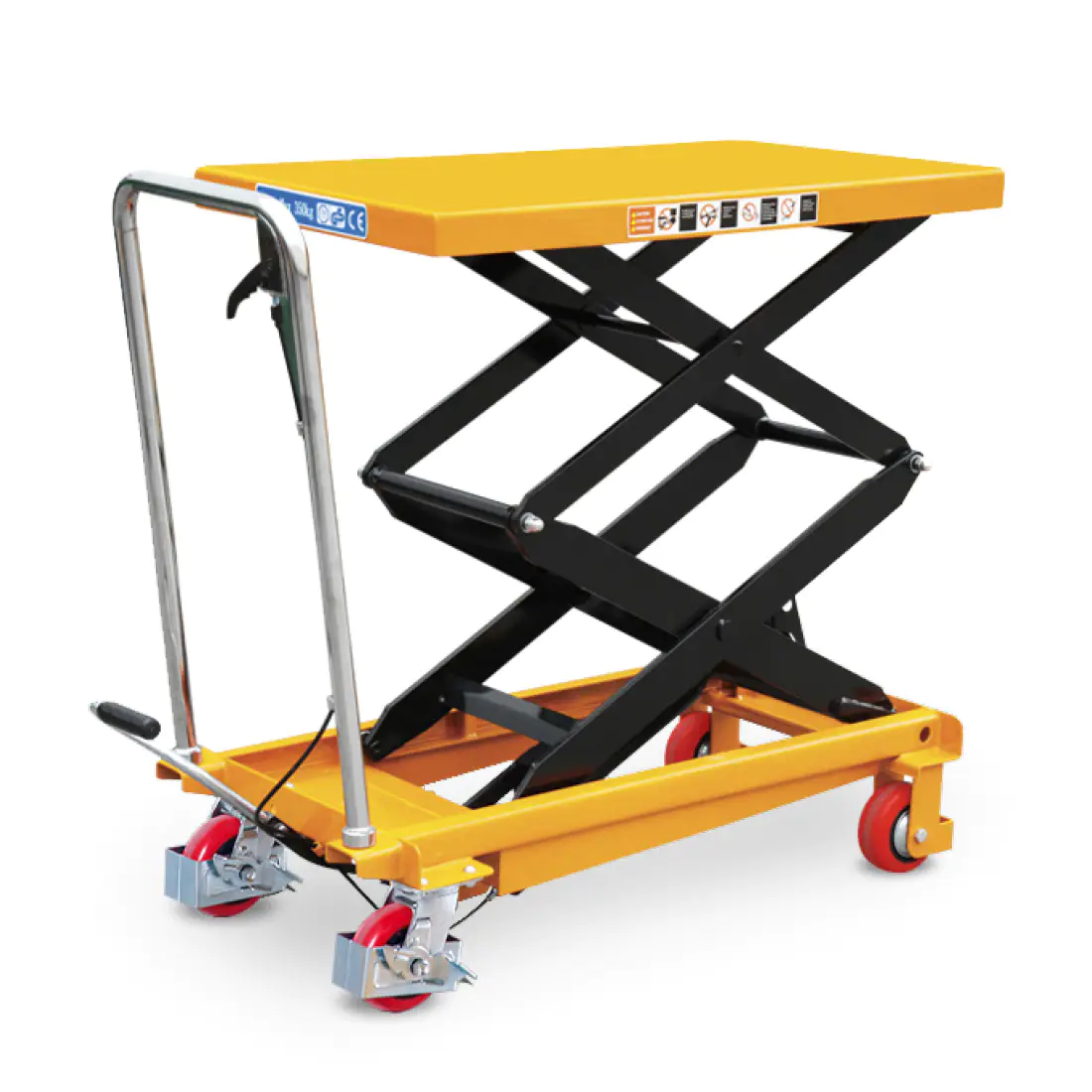 A Staxx gyártmányú, magas minőségű kézi hidraulikus emelőasztal a műhelyben történő szerelésekhez és logisztikai feladatokhoz egyaránt praktikus és megbízható segítséget nyújt. A lábbal működtethető hidraulikus pumpa lehetővé teszi akár 350 kg-os terhek erőlködés nélküli emelését, míg a leengedés az emelőkaron elhelyezett kézi karral finoman és biztonságosan szabályozható, így az asztal magassága tetszőleges pozícióban beállítható az ergonomikus munkavégzés érdekében. A kerekeken gördülő, könnyen mozgatható és jól irányítható asztal hatékony megoldást kínál alkatrészek mozgatására csarnokok és logisztikai területek között is.